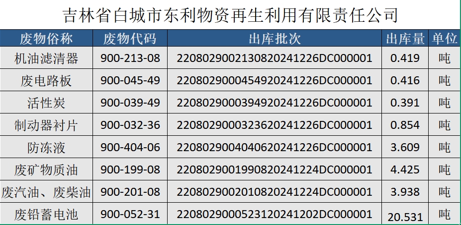 白城天奇裝備機械有限公司2024年度危險廢物轉移信息公示 我公司2024年12月2...[全文]